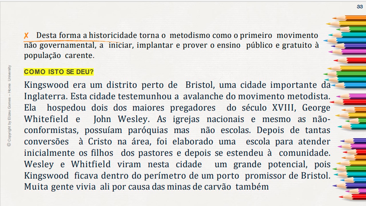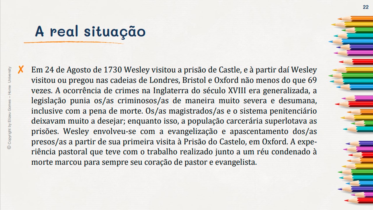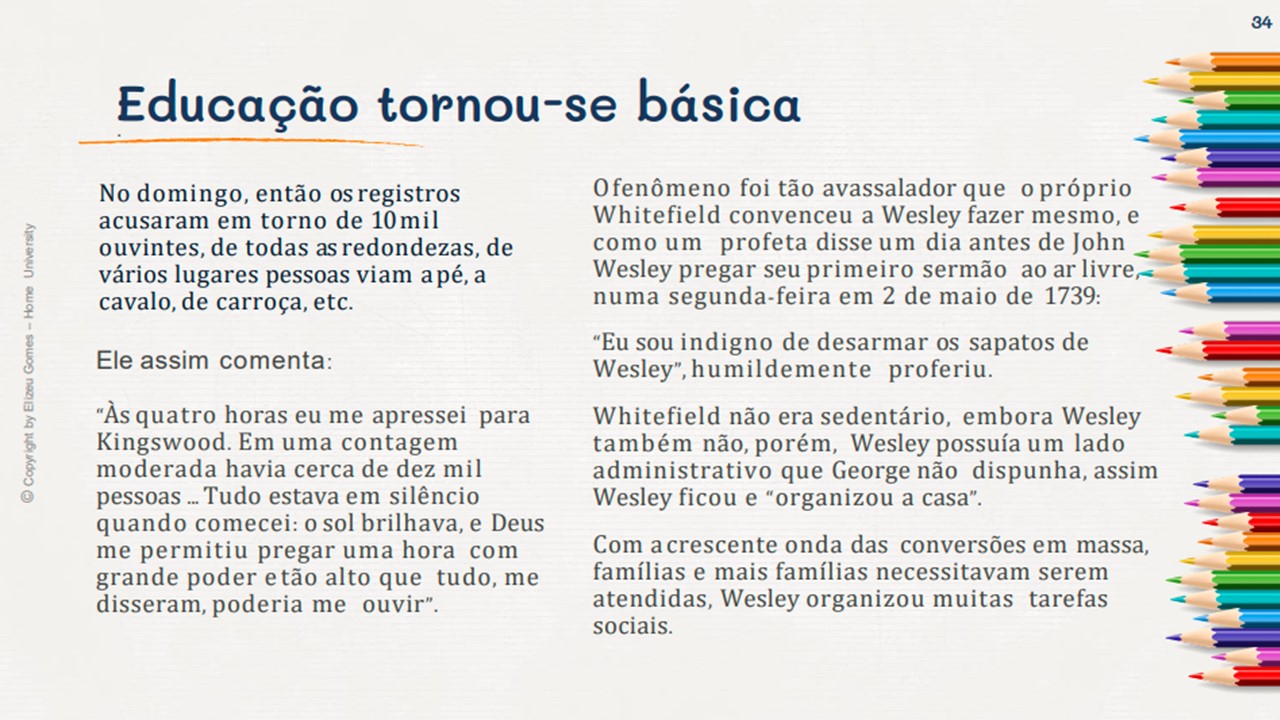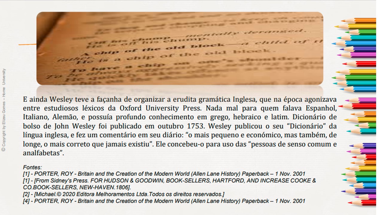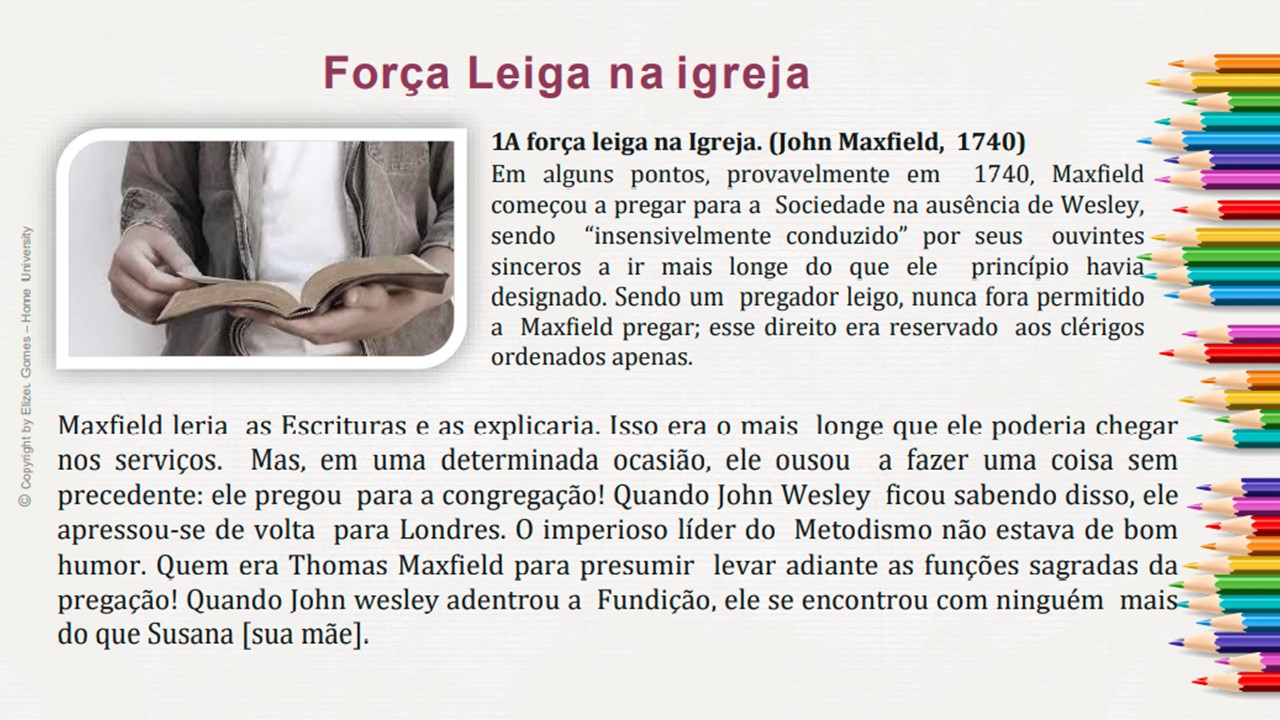 Assim... Pessoas comuns, mas que transformaram o mundo com as contribuições que abençoaram todas as comunidades e gerações. Em 1729, John Wesley e mais outros rapazes, destemidos acadêmicos de Oxford, surgiram com uma mensagem desafiadora, alarmante e santa. Eles não se conformavam com o "estado paralisante" da religião cristã e política. Assim, eles iniciaram um modelo para a nação da Inglaterra e para o mundo. O modelo queelestrouxeram não só era religioso, no entanto, era também um alerta alusivo à saúde, artes, cultura, politica, etc. Um povo que Deus levantou para trazer um novo tempo, não somente para a Inglaterra, consequentemente no mundo.